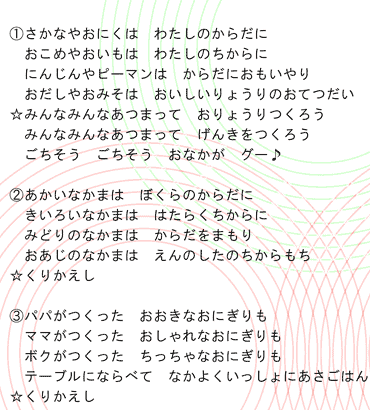 その推進の一翼にと、栄養士が食育の歌を作りました。